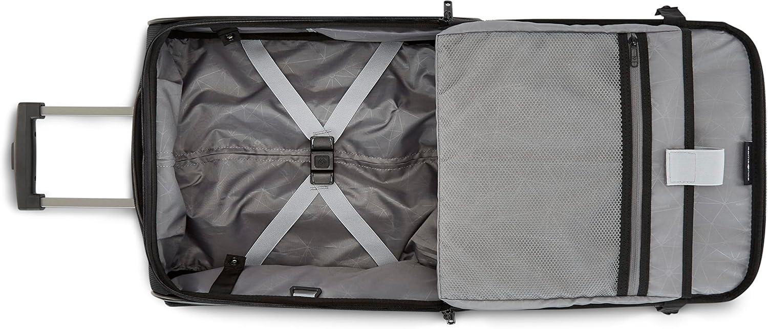 The Carry-On features Dual Spinner Wheels for effortless maneuverability and a smooth glide while a large pull handle provides a comfortable grip. Thoughtful organizational pockets give you the flexibility to pack your way, including a removable Wetpak(TM) pocket designed to hold toiletries.