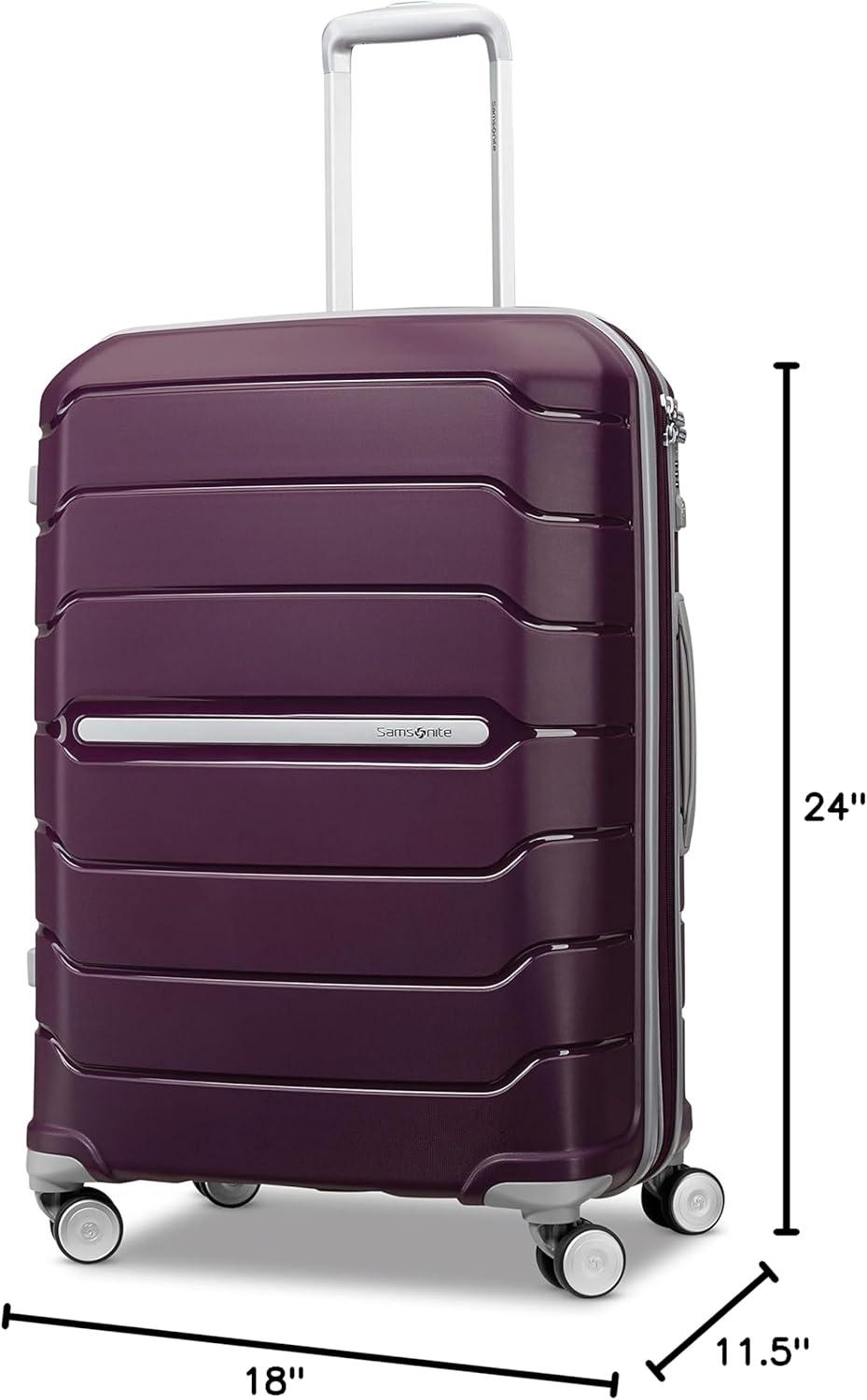 Durable & Stylish: This 2-piece luggage set features a scratch-resistant Polypropylene hardshell. Includes carry-on (meets carry-on size restrictions for those traveling domestically and looking to stay light) and Large Spinner (maximize your packing power and the ideal checked bags for longer trips). External Dimensions (with wheels): Carry-on 23in x 15in x 10in, 6.5lbs; Large Checked 31.1in x 20.9in x 13.8in, 9.6lbs