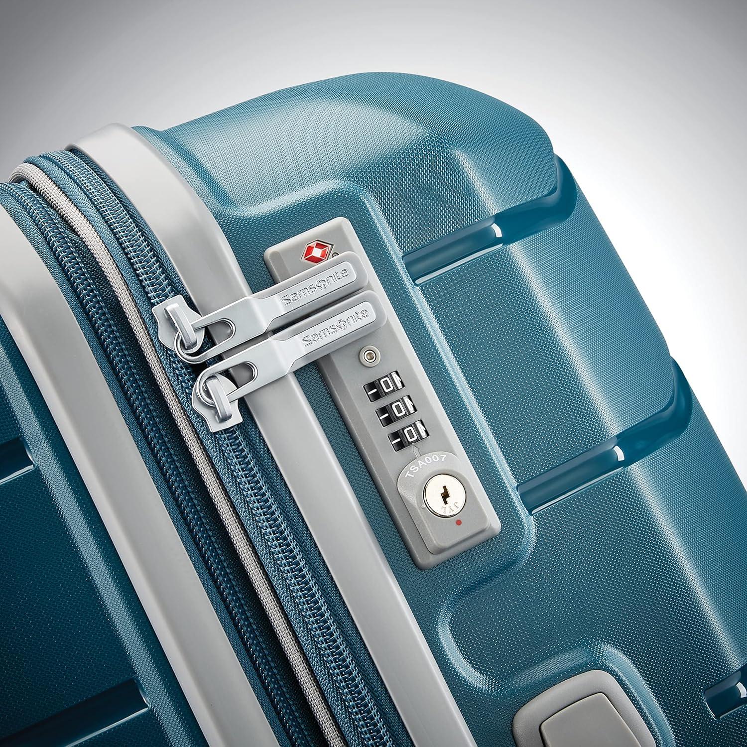 Durable & Stylish: This 2-piece luggage set features a scratch-resistant Polypropylene hardshell. Includes carry-on (meets carry-on size restrictions for those traveling domestically and looking to stay light) and Large Spinner (maximize your packing power and the ideal checked bags for longer trips). External Dimensions (with wheels): Carry-on 23in x 15in x 10in, 6.5lbs; Large Checked 31.1in x 20.9in x 13.8in, 9.6lbs
