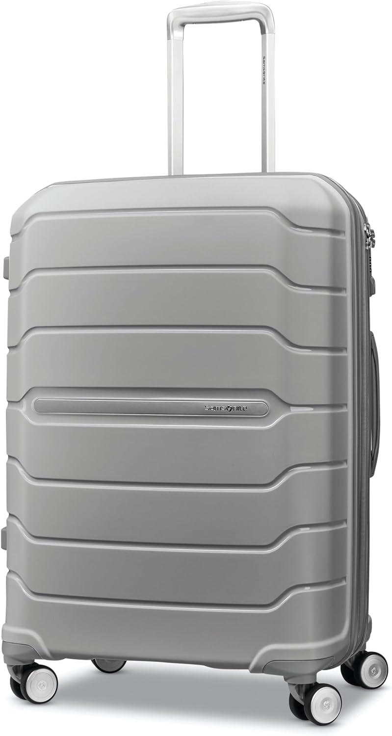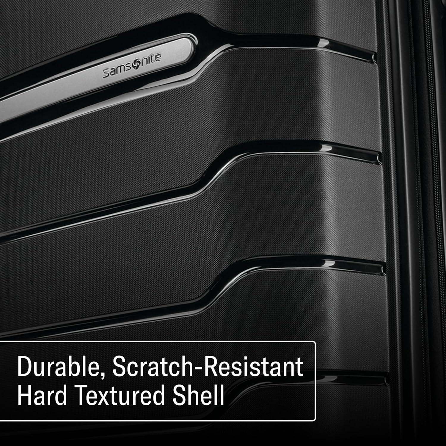Durable & Stylish: This 2-piece luggage set features a scratch-resistant Polypropylene hardshell. Includes carry-on (meets carry-on size restrictions for those traveling domestically and looking to stay light) and Large Spinner (maximize your packing power and the ideal checked bags for longer trips). External Dimensions (with wheels): Carry-on 23in x 15in x 10in, 6.5lbs; Large Checked 31.1in x 20.9in x 13.8in, 9.6lbs