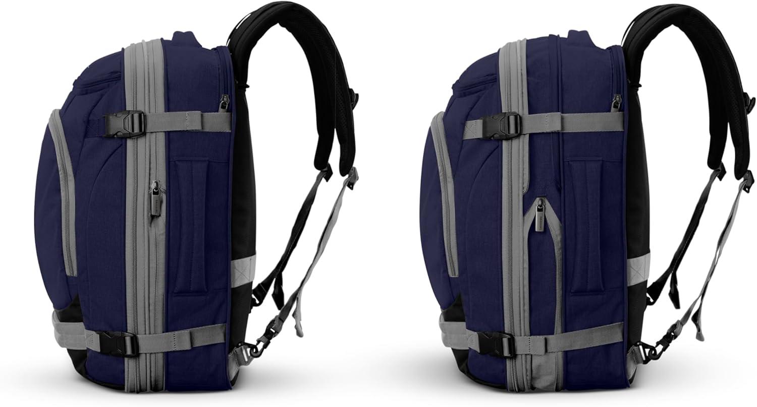 The Mother Lode Travel backpack is everything you need in a carry-on with the comfort of a backpack. This backpack has tons of pockets strategically placed inside and out so everything has its place. Not only is it easy to organize, but its expandable with external compression straps so you can still fit your favorite backpack in the overhead bin.