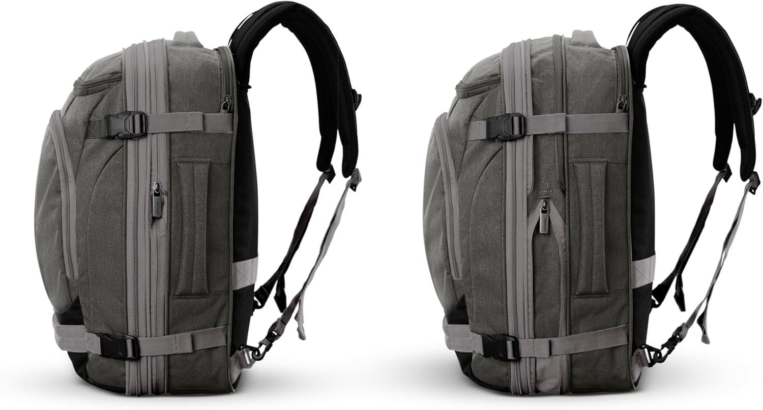 The Mother Lode Travel backpack is everything you need in a carry-on with the comfort of a backpack. This backpack has tons of pockets strategically placed inside and out so everything has its place. Not only is it easy to organize, but its expandable with external compression straps so you can still fit your favorite backpack in the overhead bin.