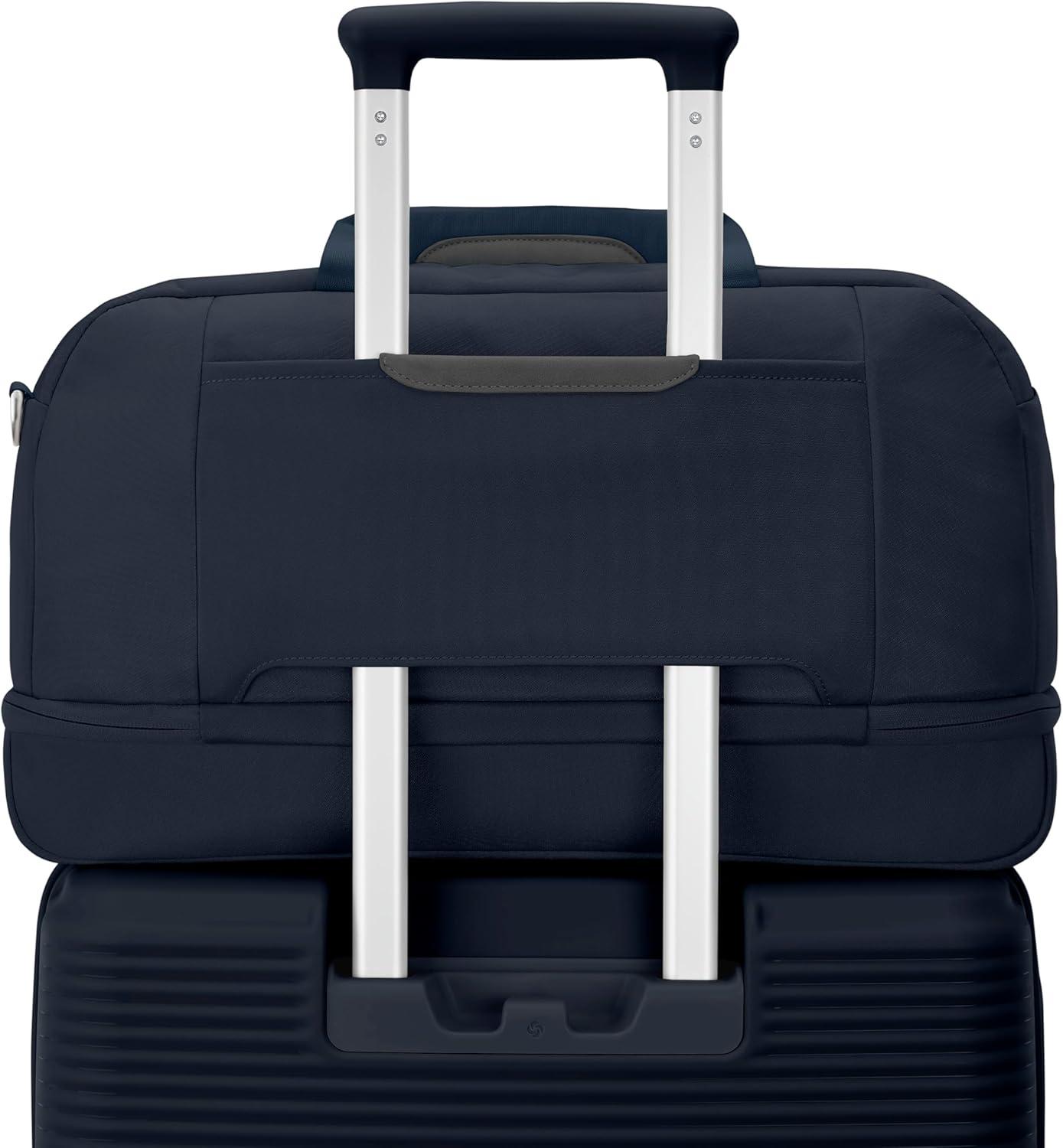 imageSamsonite Paralux Weekender Duffel Bag Travel CarryOn Bag with Wide Opening DropBottom Shoe ampamp Laundry Compartment AirTag Holder StackIt Strap  Business ampamp Leisure Travel BagMidnight Navy
