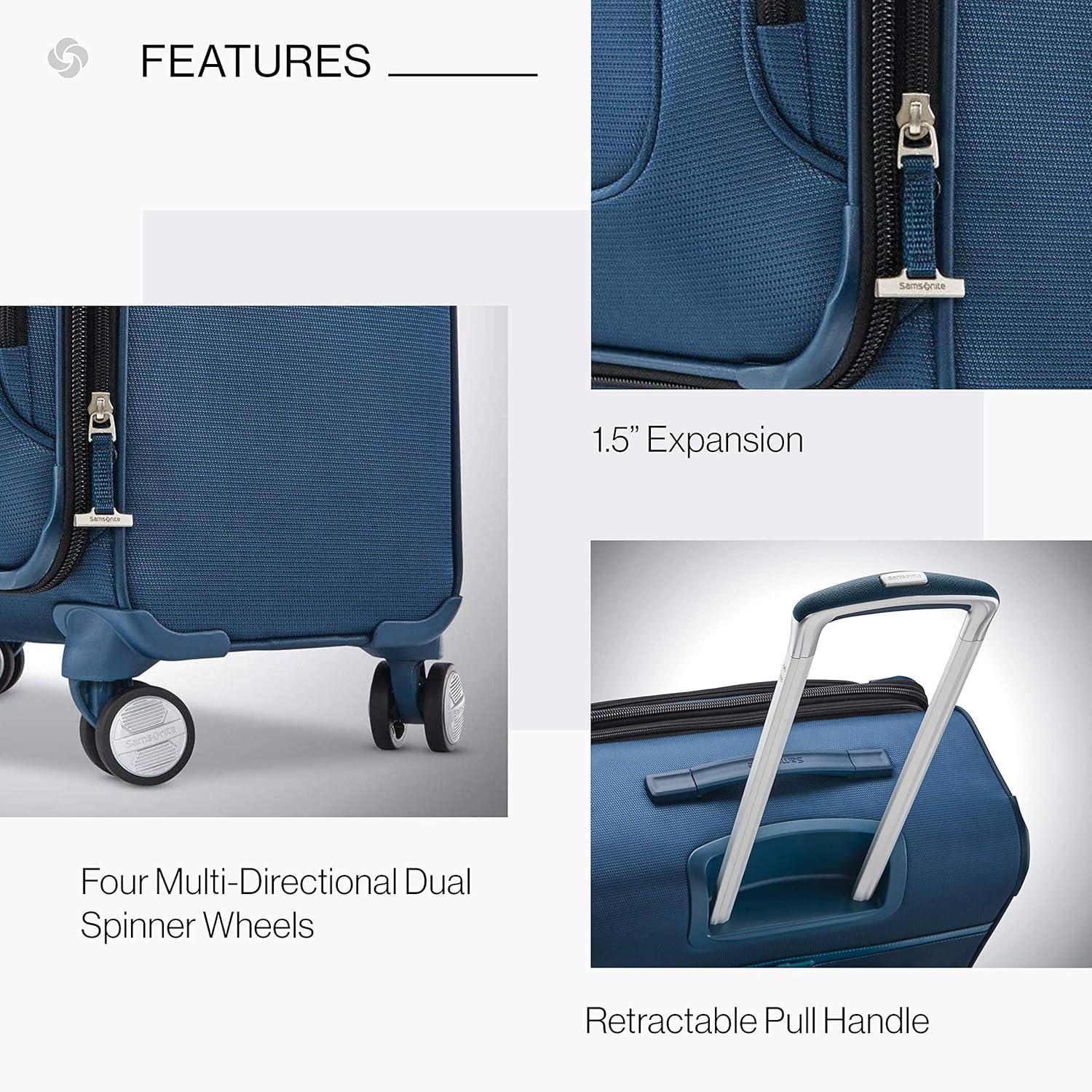 Samsonite Solyte DLX Softside Expandable Luggage with Spinner Wheels, Mineral Grey, Carry-On 20-Inch(Iris Blue)