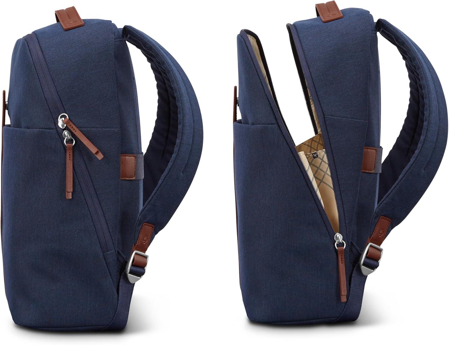 Front wall organization features a zippered storage pocket, 2 slip storage pockets, and 2 pen sleeves